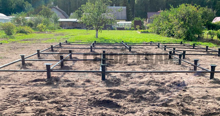 Сварка опор в единую решетку горячекатаным металлическим профилем фиксирует вертикальные оси свай и распределяет нагрузки более равномерно по фундаменту. Такая система способствует долговечности и прочности постройки.