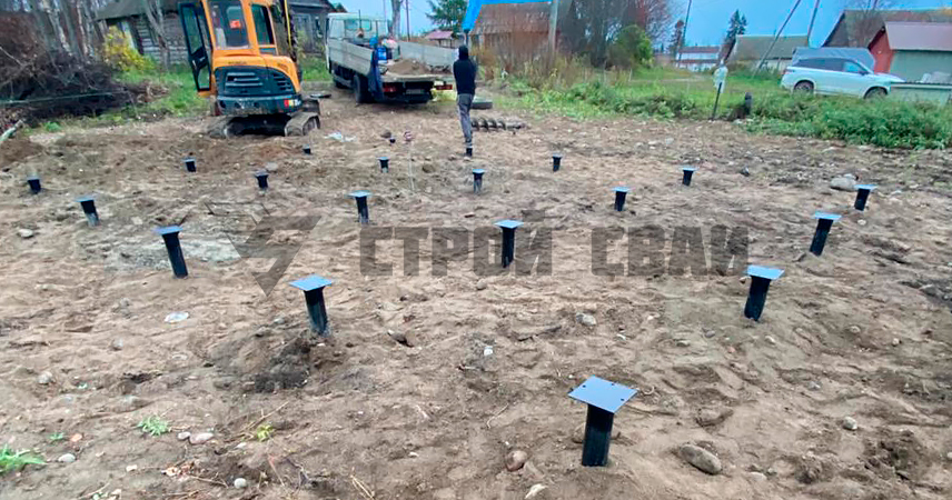 Если свая стандартной длины не достигает плотного слоя, ее наращивают удлинителями и продолжают вращение, пока лопасть не упрётся в несущий горизонт грунта. В этом случае, применение обвязки обязательно: вертикальные оси опор необходимо зафиксировать сваркой.
