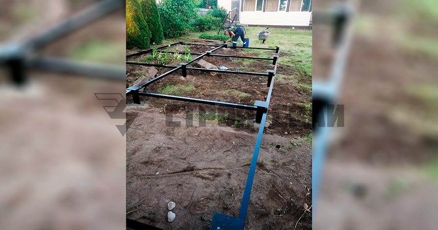 Обвязка стальным горячекатаным уголком выполняется для фиксации вертикальных осей свай и распределения нагрузок по опорам. Такая система обладает намного более высокой надежностью и прочностью.