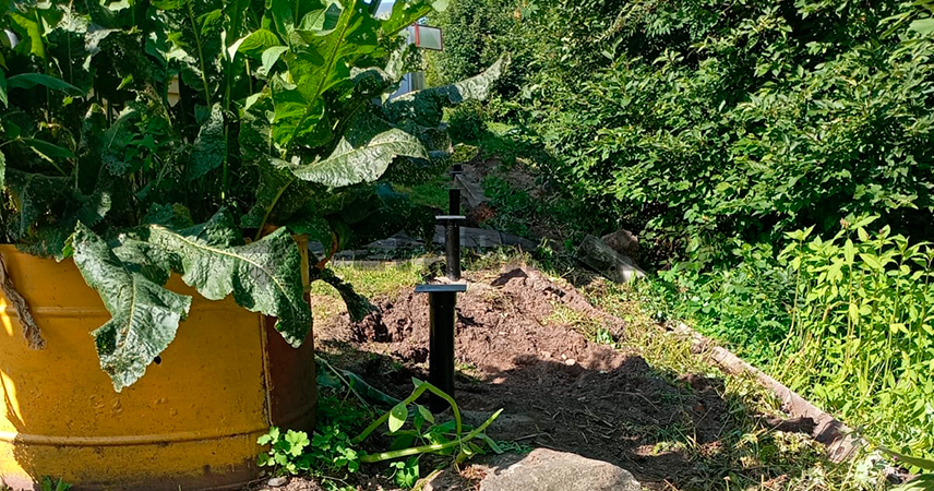 Монтаж забора на винтовых сваях можно выполнять несколькими методами. Здесь представлен последовательный: сначала закручиваются лопастные опоры, затем привариваются оголовки с горизонтальными площадками, а потом — вертикально на площадки устанавливают отрезки квадратного профиля — стойки забора.